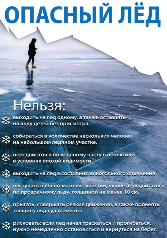 Множество опасностей таит в себе зимний лёд, особенно на водоёмах и реках. Напоминаем, что детям категорически запрещено находиться вблизи водоёмов без взрослых!